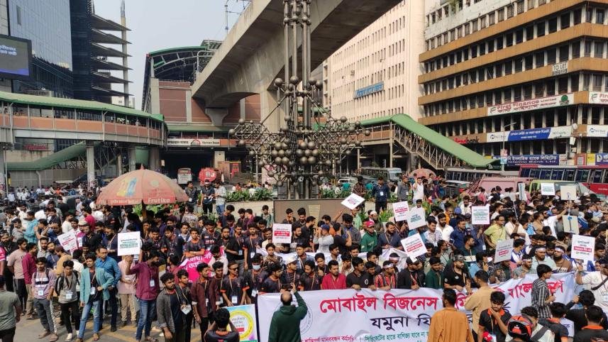 ধানমন্ডির আনিকা টেলিকমের মালিক আলমগীর কবীর জানান, বর্তমান পরিস্থিতিতে ব্যবসা করা ‘অসম্ভব’ হয়ে পড়েছে, আর সে কারণেই তারা আন্দোলনে নেমেছেন।